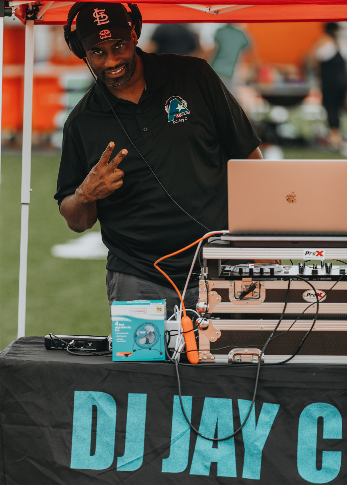 One of the most notable moments in DJ Jay C’s career was deejaying the Battle of the Bands at the Edward Jones Dome in 2004, where he entertained over 8,000 fans between performances. He has worked with numerous national recording artists and comedians throughout his career.